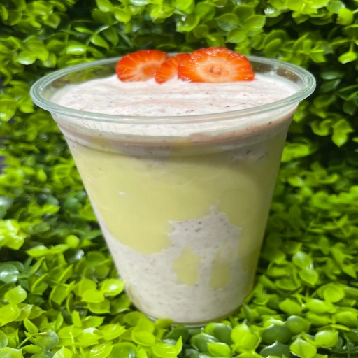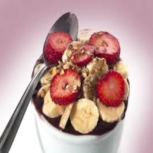 1l de açaí, banana, morango, ovomaltine, leite em pó, granola e calda de morango