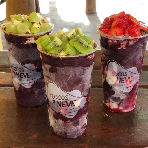 1,5L de açaí, creme de ovomaltine, tubetes, banana, leite em pó, sorvete, ovomaltine, sonho de valsa e calda de choco... Ver completo