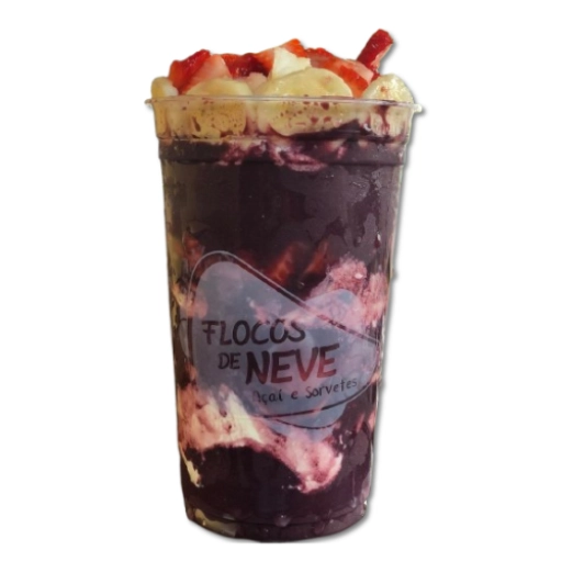1l de açaí, morango, banana, leite em pó, granola, chocoball, sorvete e leite condensado